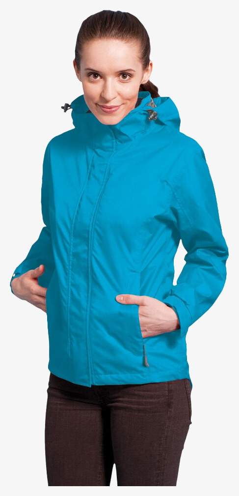 Women's Performance Jacket ma prosty kołnierz, zamek dwukierunkowy z taśmą na rzep, odpinany kaptur oraz kieszenie na zamek, w tym jedną napoleon. Zawiera dostęp do zdobienia przez ukryty wewnętrzny zamek i regulowane mankiety na taśmę na rzep. Materiał jest powlekany PU, wodoodporny i oddychający.
