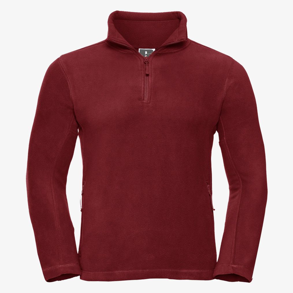 Polaire col zippé JERZEES COLORS Polar r-874m-0 ze 100% poliestru, z dopasowanym zamkiem 1/4 przy kołnierzu, bocznymi kieszeniami na zamek oraz ściągaczem ze sznurkiem u dołu. Wykończenie antypillingowe.