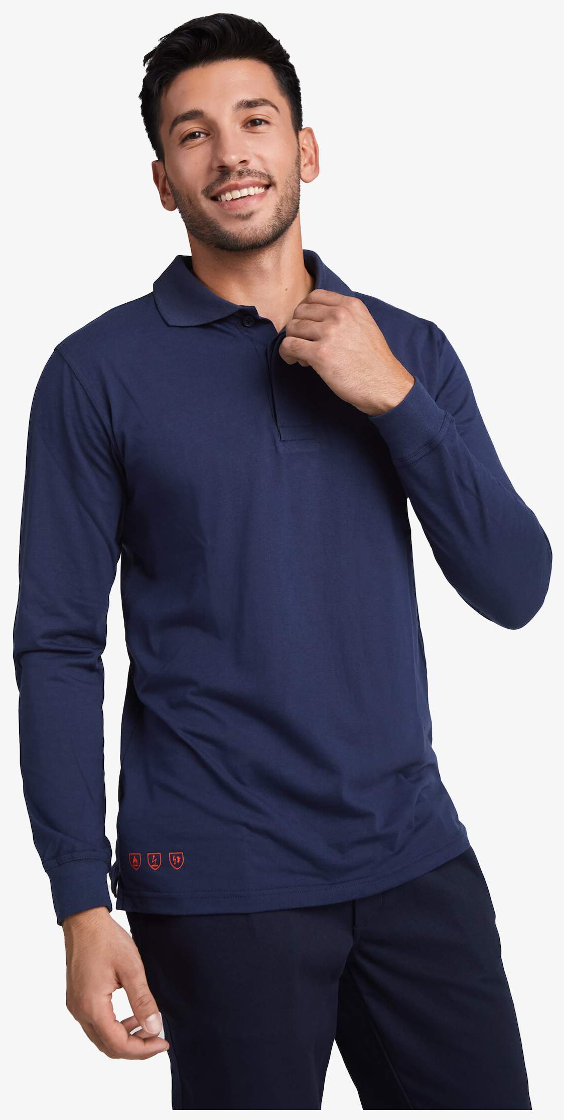 Polo z długim rękawem Santana wykonane z materiału ognioodpornego z kołnierzem i mankietami w ściągaczu 1x1. Posiada ukrytą zapinaną na trzy guziki listwę, wzmocnioną lamówkę na karku oraz boczne rozcięcia u dołu. Model zapewnia ochronę przed ciepłem, płomieniami i zagrożeniami termicznymi łuku elektrycznego oraz posiada właściwości antystatyczne.