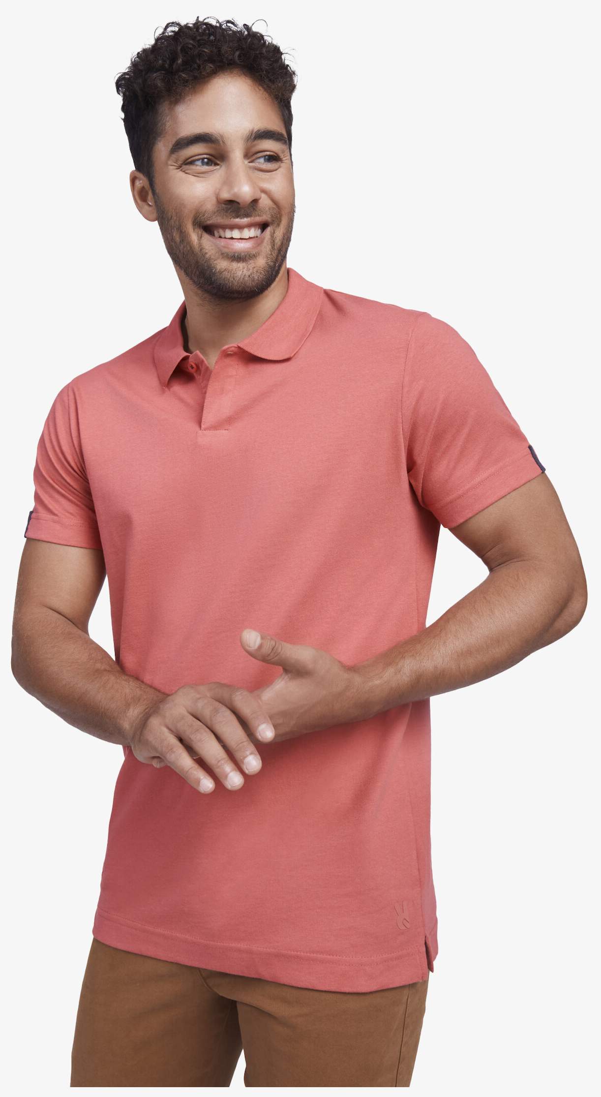 Koszulka polo z krótkim rękawem Tyler wykonana jest z prostego dżerseju z prążkowanym kołnierzem 1x1 oraz listwą zapinaną na jeden guzik. Wzmocnione szwy kryte na kołnierzu i boczne rozcięcia na dole dodają funkcjonalnych detali. Kontrastowy pasek w jodełkę znajduje się na mankietach i kołnierzu.