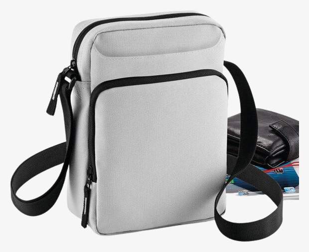 sac bandoulière posiada regulowany pasek i kilka przegródek zamykanych na zamek, przeznaczonych do przenoszenia telefonów i tabletów. Zawiera przednią kieszeń zamykaną na zamek i metkę TearAway do odrywania.