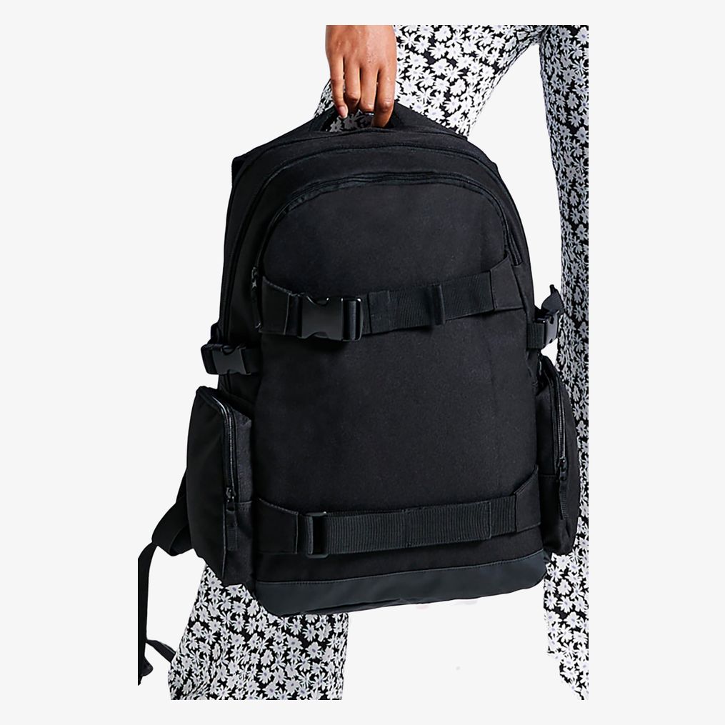 Plecak posiada rączkę i regulowane, wyściełane szelki. Tylny panel jest również wyściełany dla komfortu. Paski kompresyjne umożliwiają przewożenie deskorolki. Główna komora mieści laptop do 17 cali z zewnętrznym dostępem. Przednia kieszeń na zamek i kieszenie boczne ułatwiają organizację.