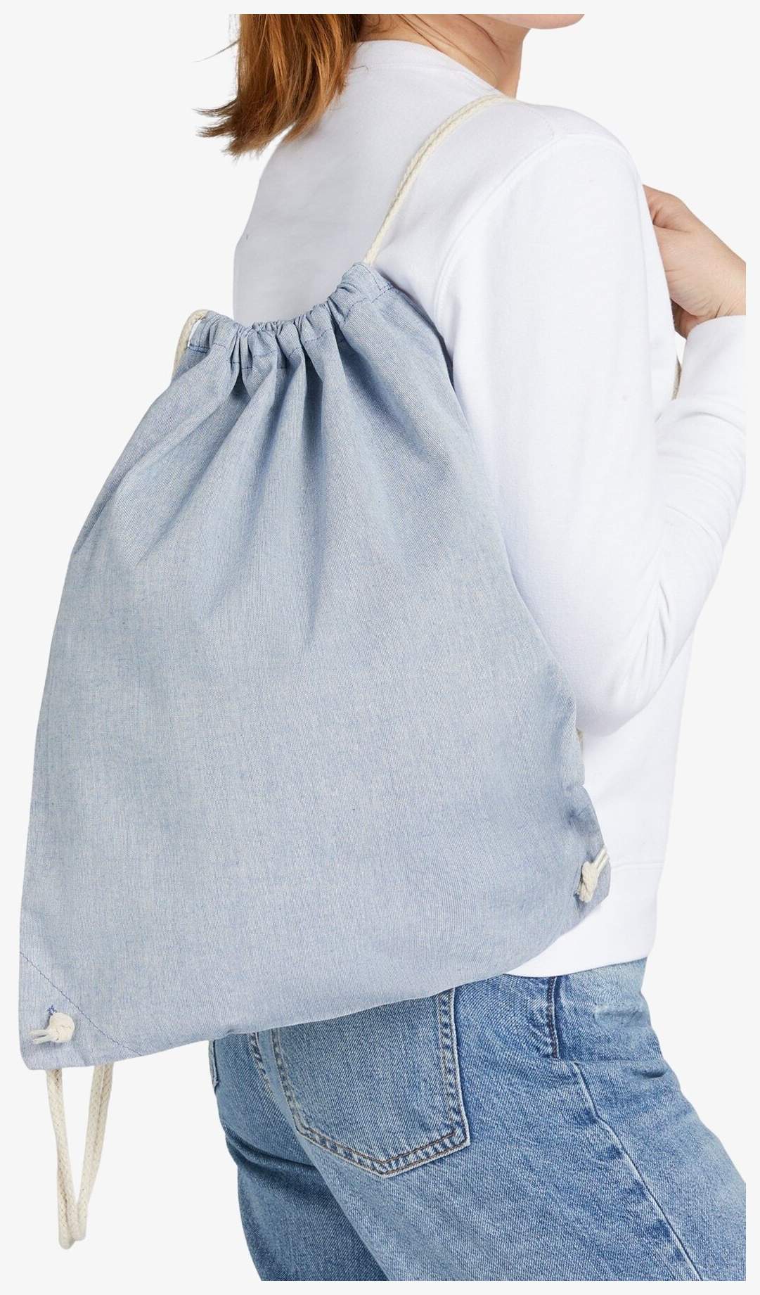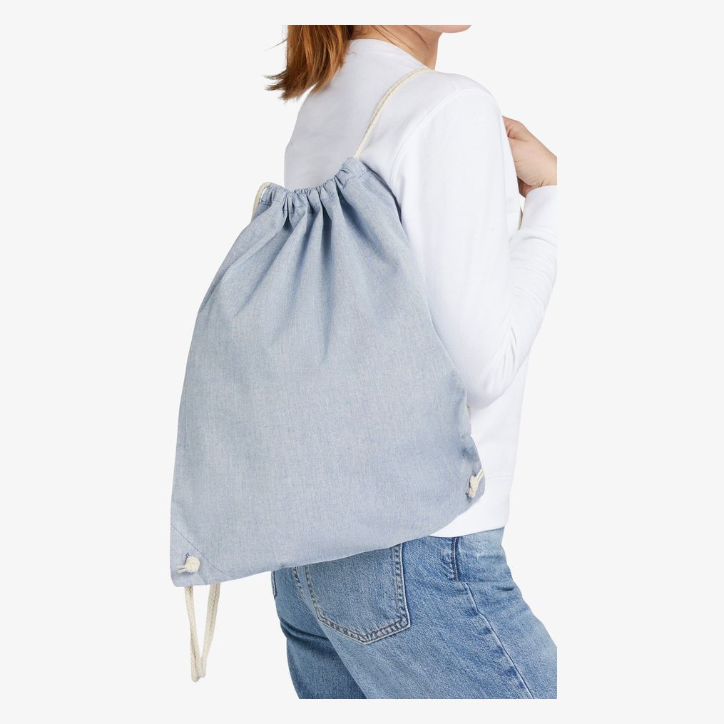 Torba sportowa bawełniana z tkaniny z recyklingu łączy bawełnę i poliester z recyklingu. Zawiera regulowane ramiączka oraz wzmocnione otwarcie do paska nośnego. Konstrukcja obejmuje wzmocnione wszywane oczka, co zapewnia większą trwałość.
