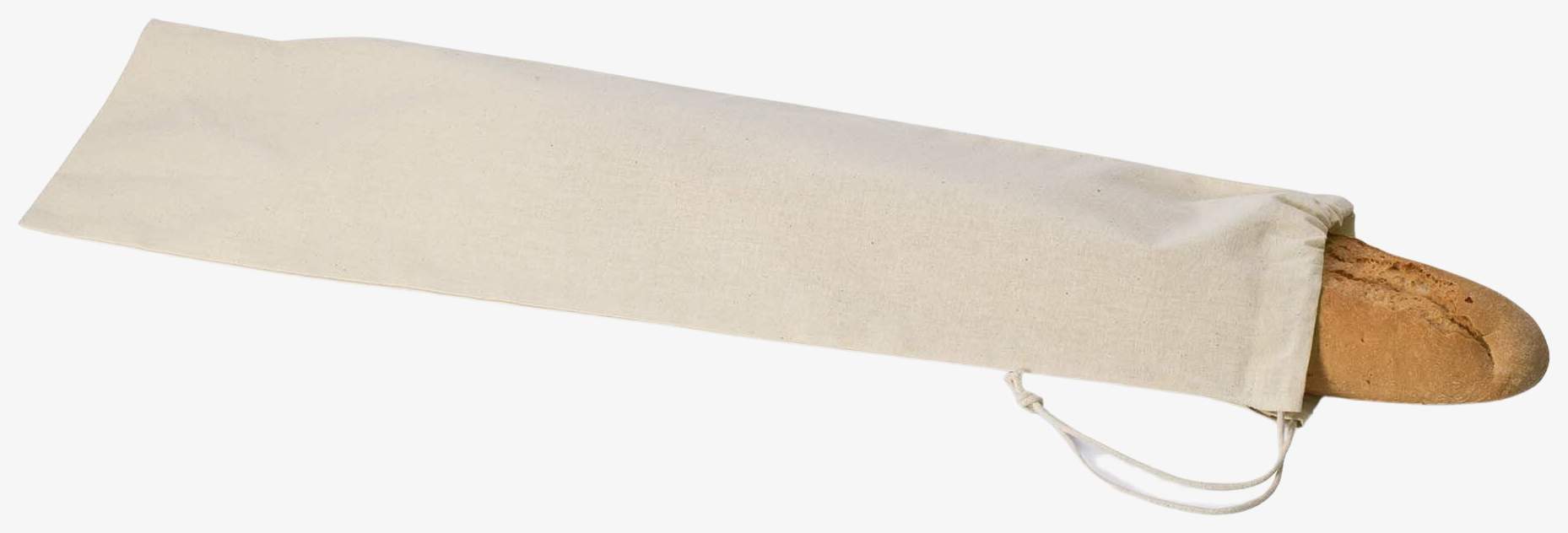 The sac à baguette made of cotton is designed to hold one baguette or two ficelles. It features a sliding closure with drawstring.