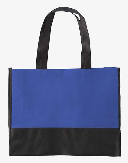 Torba na zakupy z włókniny z uchwytami ma wymiary 38 x 29 x 10 cm. Przednia i tylna część dolna zawiera czarny pas o wysokości 8,5 cm.