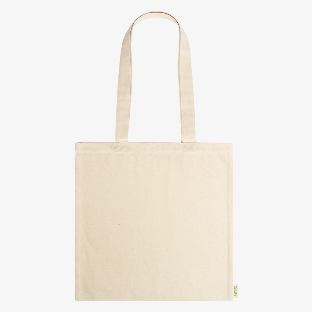 Torba zakupowa z bawełny organicznej posiada długie uchwyty o długości 70 cm, ułatwiające noszenie na ramieniu. Wymiary torby to 40 x 40 cm.