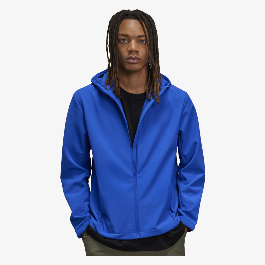 Softshell 3-warstwowy Reset Hooded wykonany jest z całkowicie recyklingowanej tkaniny z trwałą hydrofobową powłoką bez PFAS i fluoru. Posiada regulowany kaptur trzyczęściowy z osłoną brody, dłuższy tył oraz regulowane mankiety. Dwie kieszenie na zamek uzupełniają funkcjonalność. Materiał jest czterokierunkowo rozciągliwy i lekki.