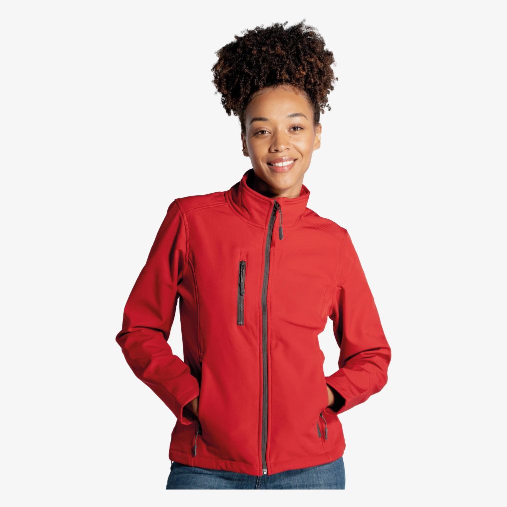 Softshell jacket lady to damska kurtka z trzema warstwami o dopasowanym kroju i dwiema bocznymi kieszeniami na zamek. Podszycie polarowe wyposażone jest w stoper do dopasowania.