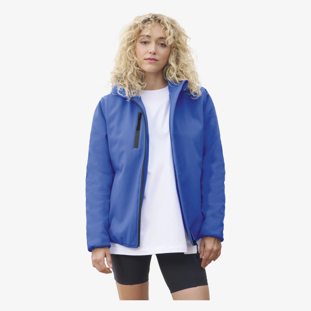 Kurtka parka Falcon Padded Women to całkowicie pikowana damska softshellowa kurtka zimowa. Posiada kaptur z elastycznym otworem, główne zapięcie oraz boczne kieszenie na piersi z czarnymi, wodoodpornymi zamkami nylonowymi, a także trzy kieszenie wewnętrzne. Dolne mankiety wyposażone są w elastyczne lamówki w tonacji.