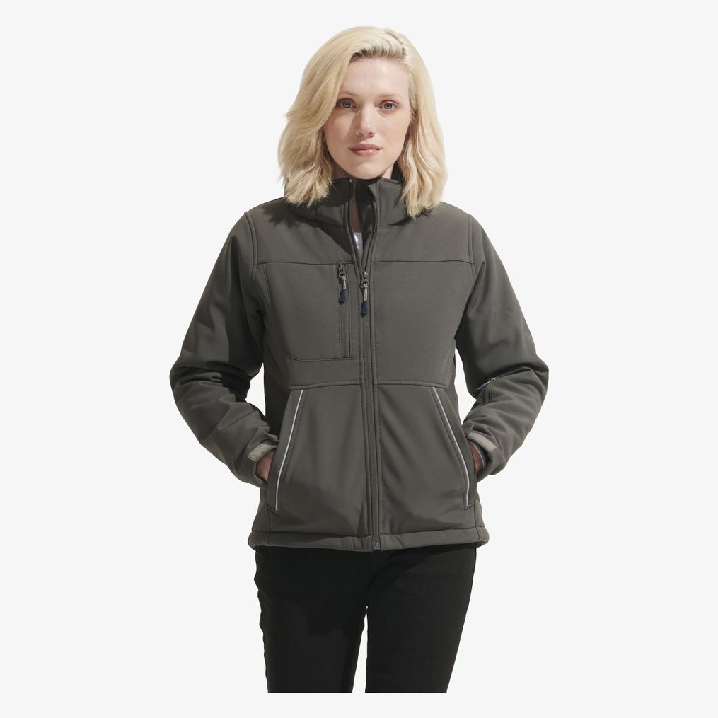 Rock Women to pikowana damska kurtka softshell z odpinanym i regulowanym kapturem z daszkiem. Kilka kieszeni na zamek ułatwia przechowywanie. Regulowane mankiety i dół dla praktycznego dopasowania.