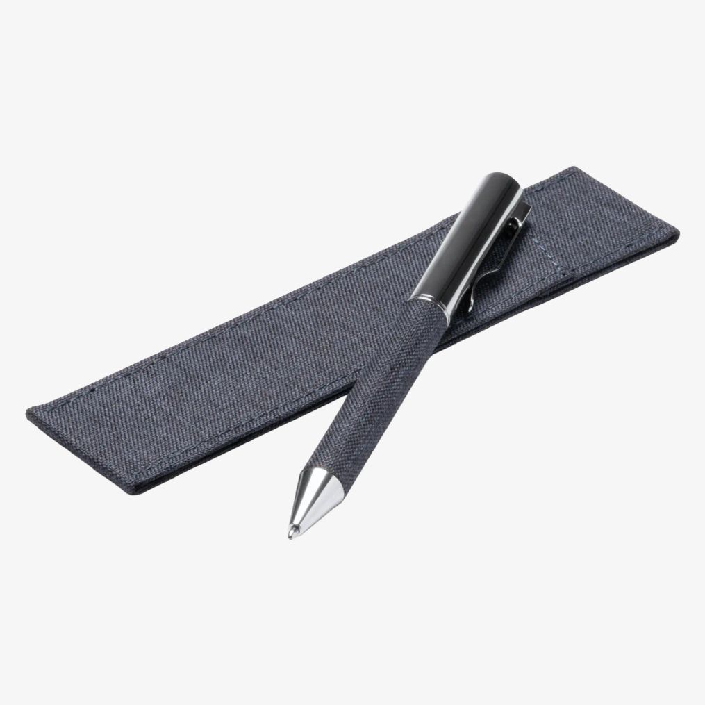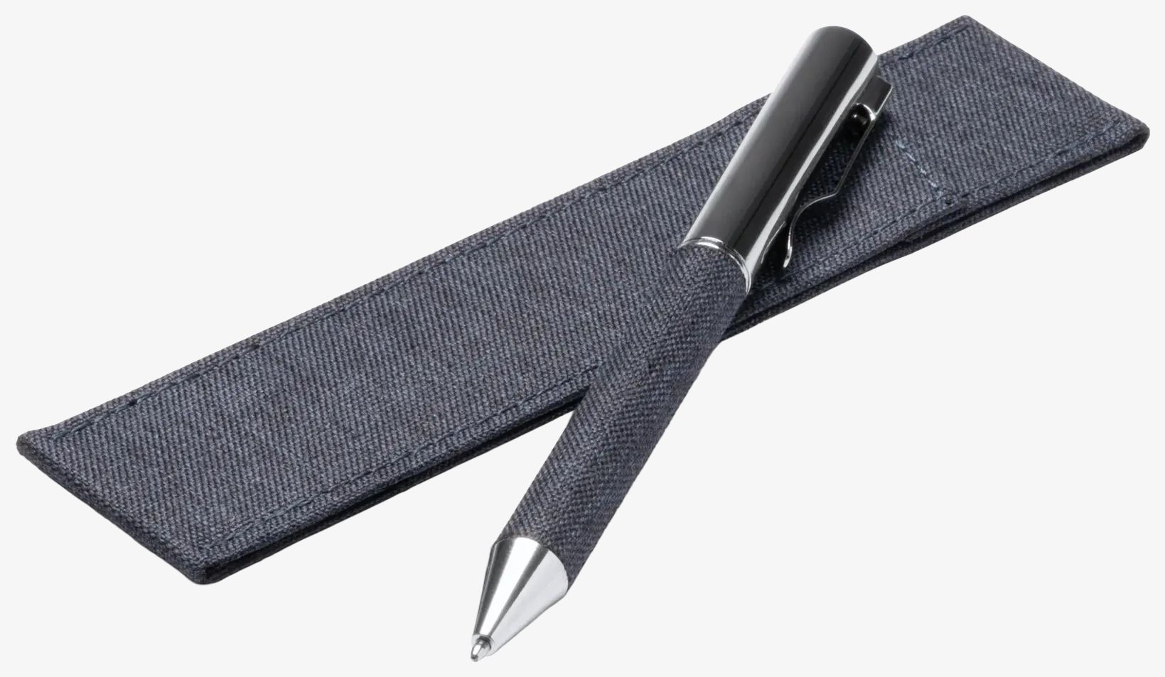Długopis kulkowy BRAMAN wykonany z metalowym obrotem i korpusem z poliestru recyklingowego RPET. Atrament jest niebieski. Do długopisu dołączone jest dopasowane etui z poliestru RPET.