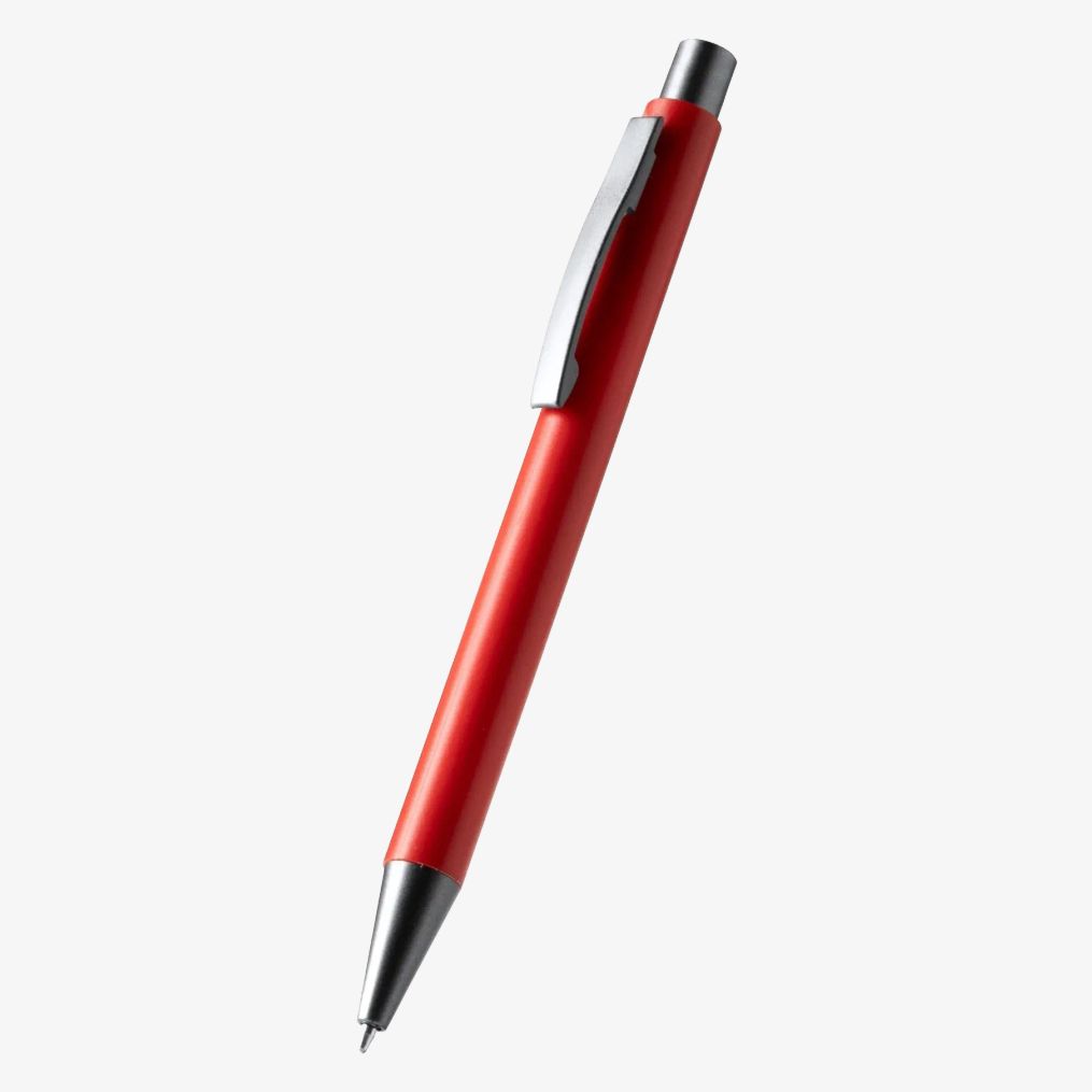 Długopis z mechanizmem push wykonany z ABS z matowym metalicznym wykończeniem i niebieskim atramentem. Projekt koncentruje się na funkcjonalności do codziennego użytku.