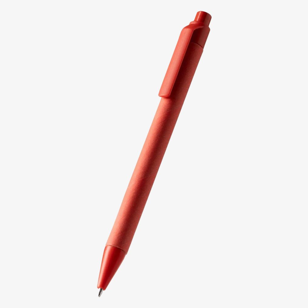 Długopis z przyciskiem ma korpus z recyklingowanego kartonu i końcówkę z recyklingowanego ABS. Używa niebieskiego tuszu odpowiedniego do codziennego pisania.