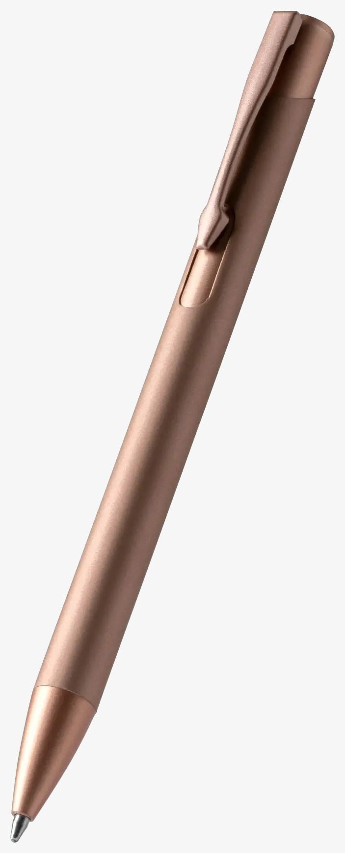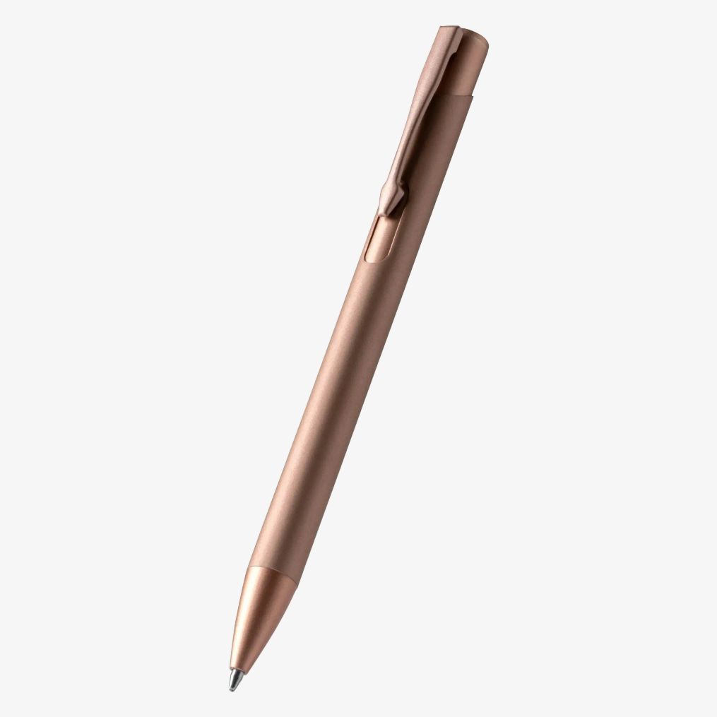 Metalowy długopis z przyciskiem i matowym wykończeniem charakteryzuje się stonowanym designem oraz nabojem jumbo z niebieskim tuszem umożliwiającym długotrwałe pisanie bez przerw.