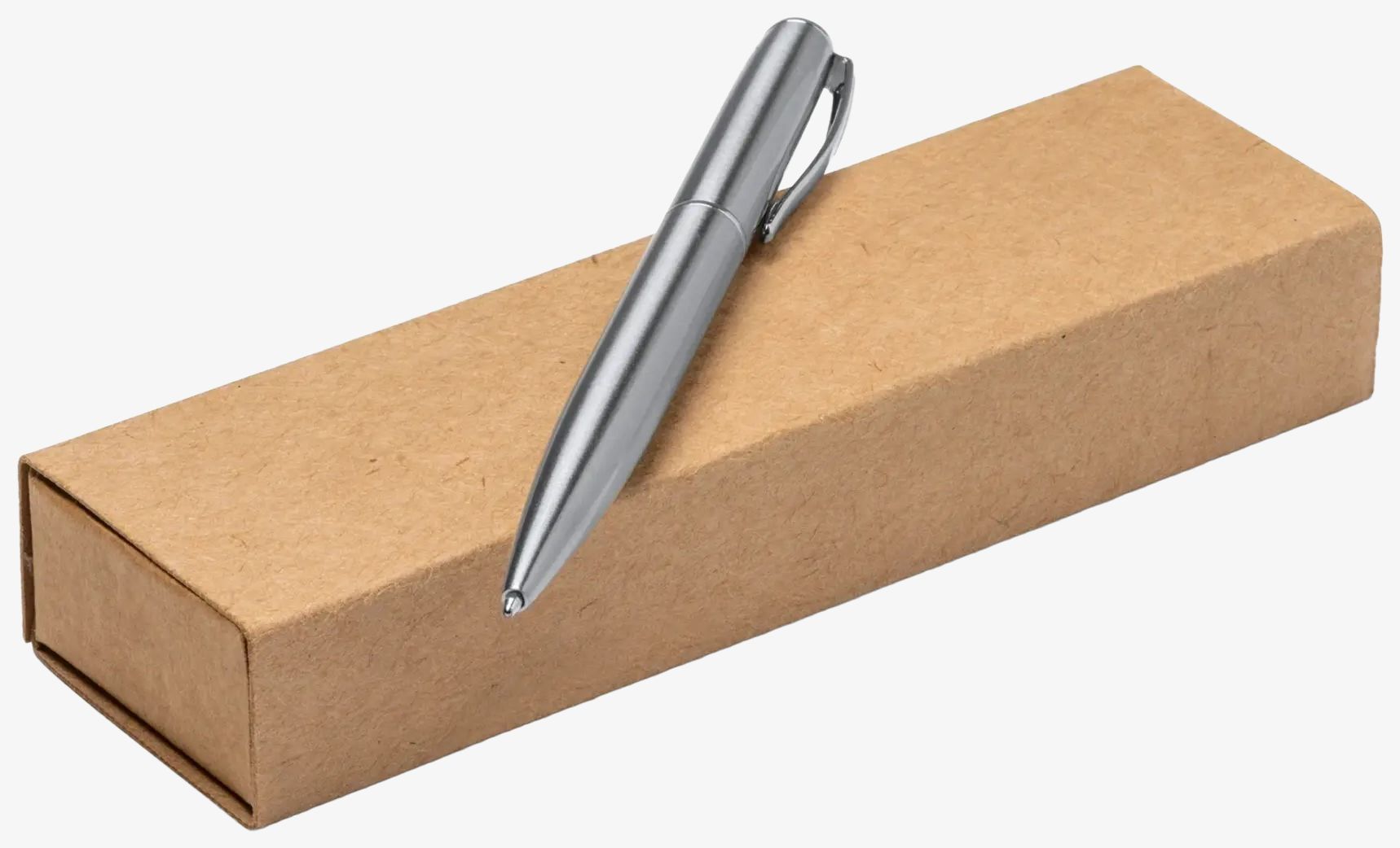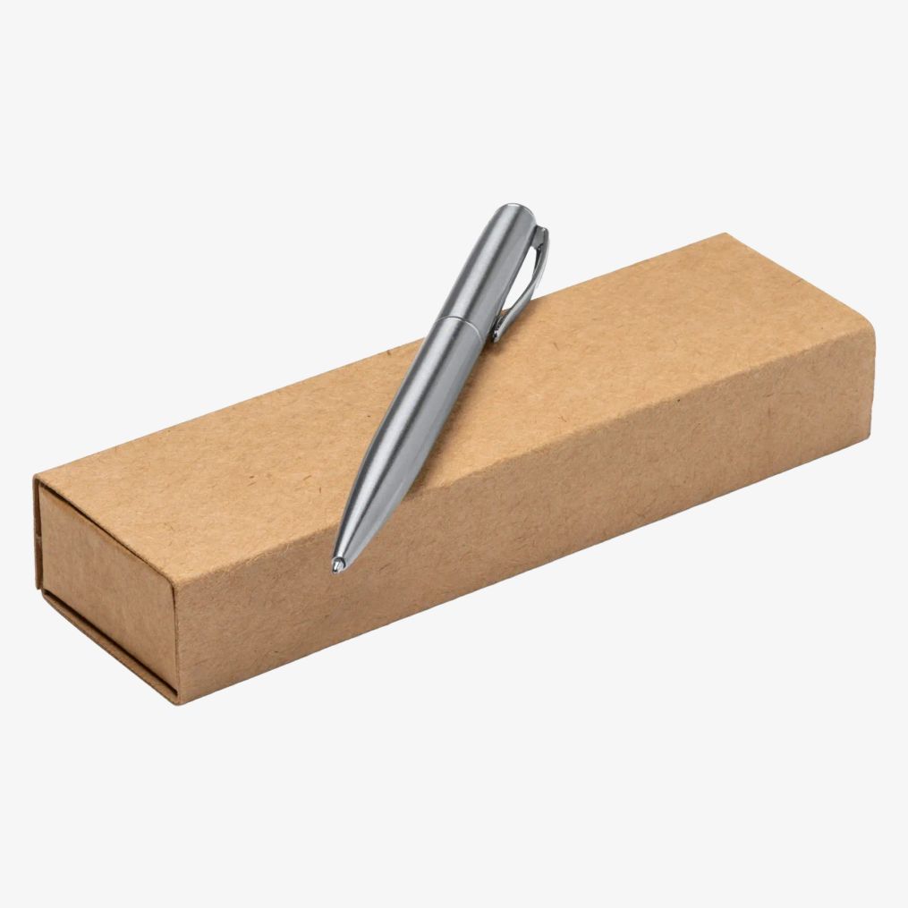 Obrotowy długopis z korpusem ze stali nierdzewnej z recyklingu cechuje się solidną i trwałą konstrukcją. Używa naboju z metalicznym niebieskim atramentem.