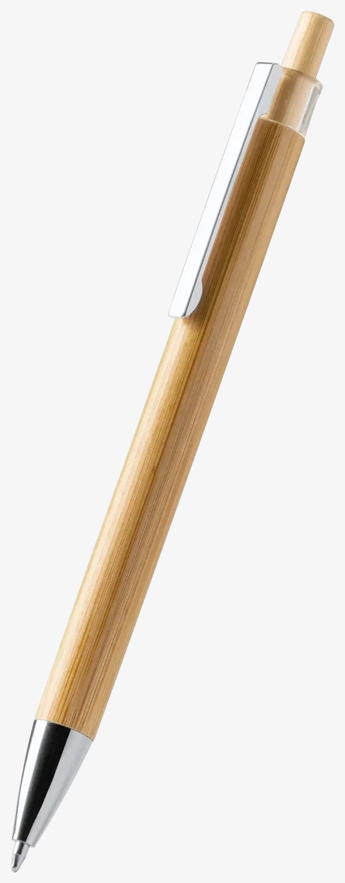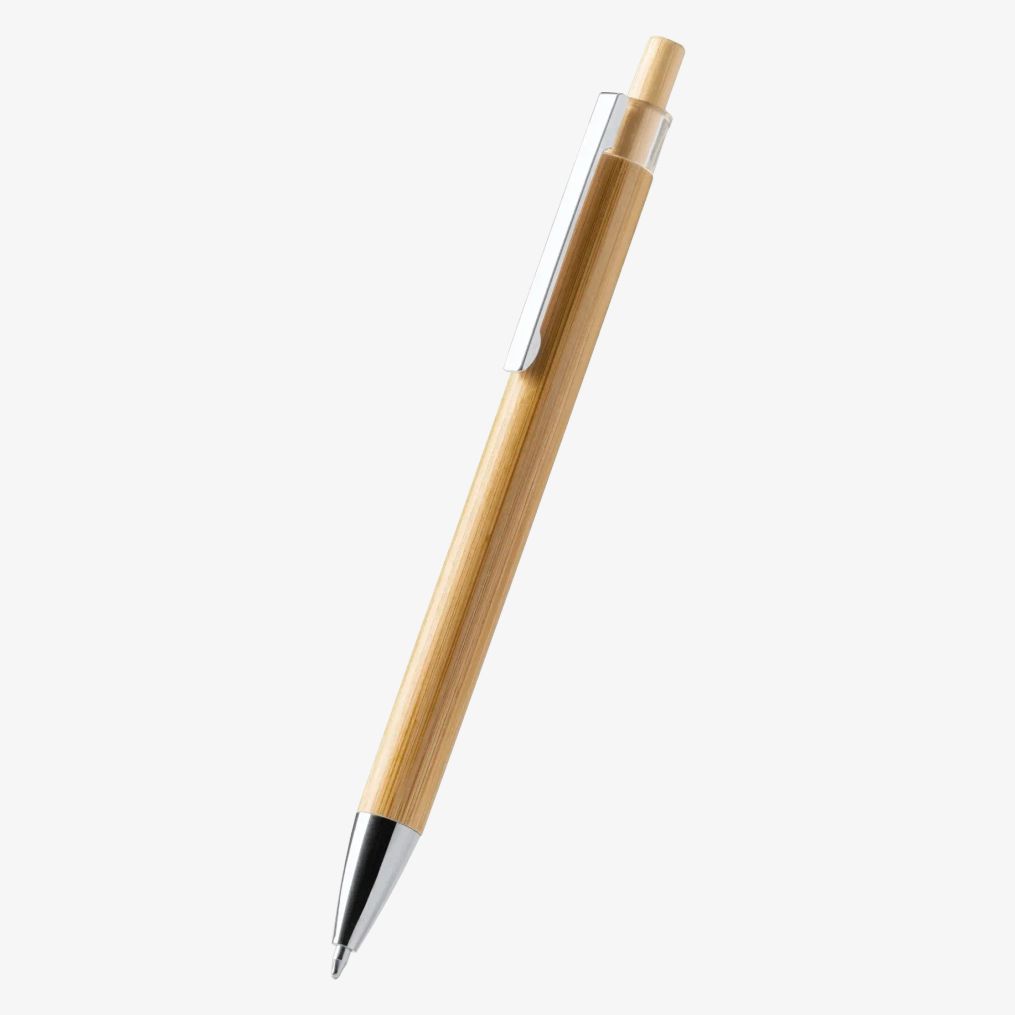 Długopis kulkowy FIKE posiada korpus bambusowy z mechanizmem naciskowym oraz metalowy klips z chromowanymi detalami. Tusz ma kolor niebieski.