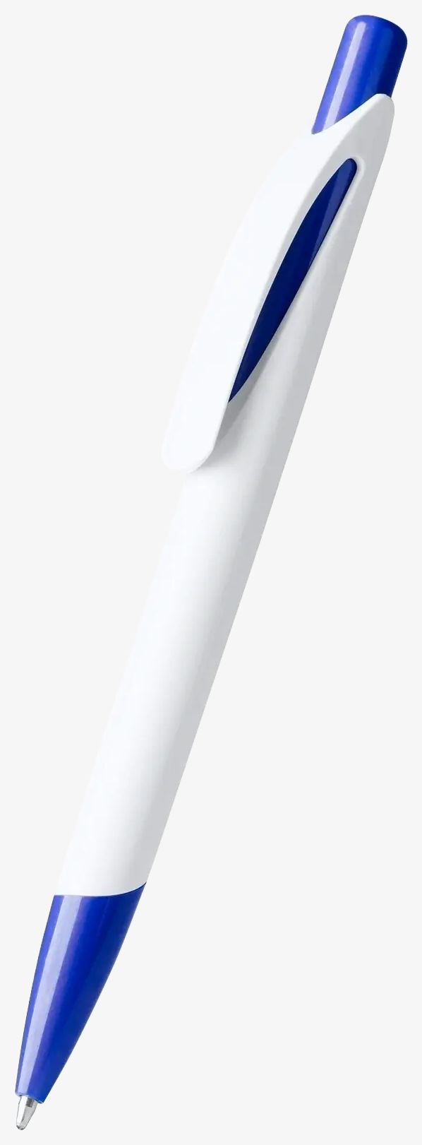 Długopis kulkowy z przyciskiem ma dwukolorowe wykończenie oraz dopasowaną końcówkę. Atrament jest niebieski.