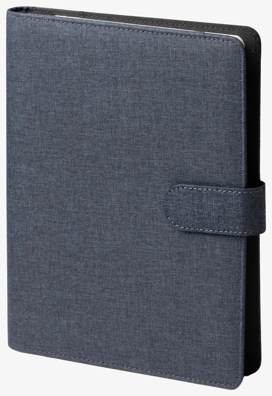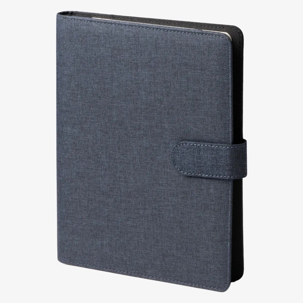 Notesnik RPET w formacie A5 zawiera zamknięcie magnetyczne oraz notes z 80 wyjmowanymi liniowanymi kartkami. Zawiera trzy wewnętrzne przegródki, dwa uchwyty na karty oraz uchwyt na długopis.