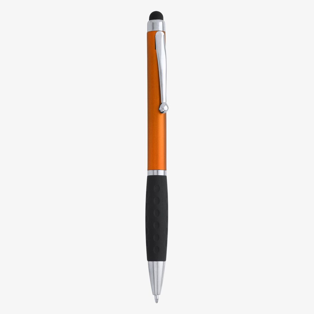 Długopis wskaźnik z mechanizmem obrotowym wykonany z ABS z metalowym wykończeniem. Używa niebieskiego tuszu odpowiedniego do codziennego pisania.