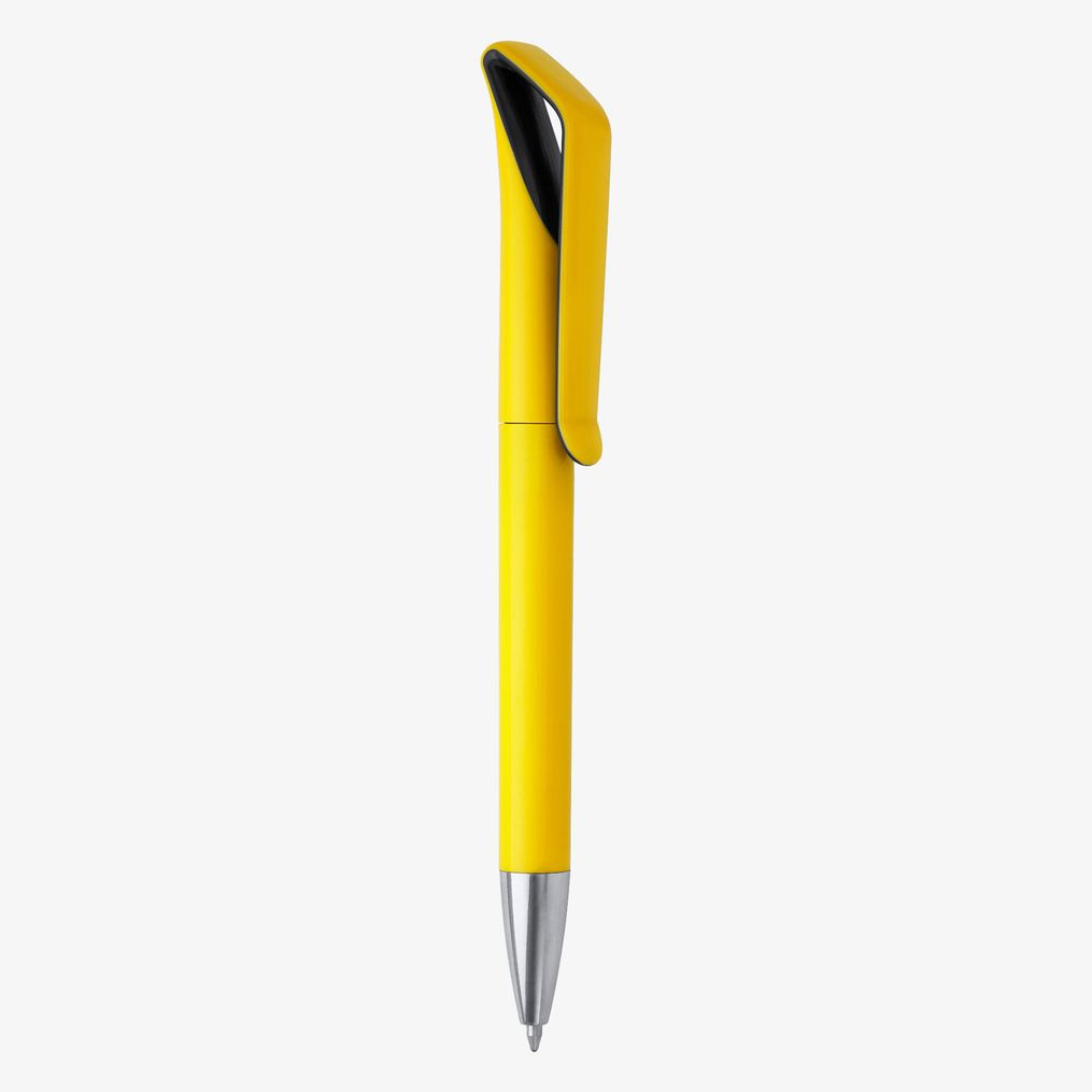 Długopis z mechanizmem obrotowym z ABS posiada błyszczące dwukolorowe wykończenie i używa niebieskiego atramentu. Nadaje się do standardowego użytku pisarskiego.