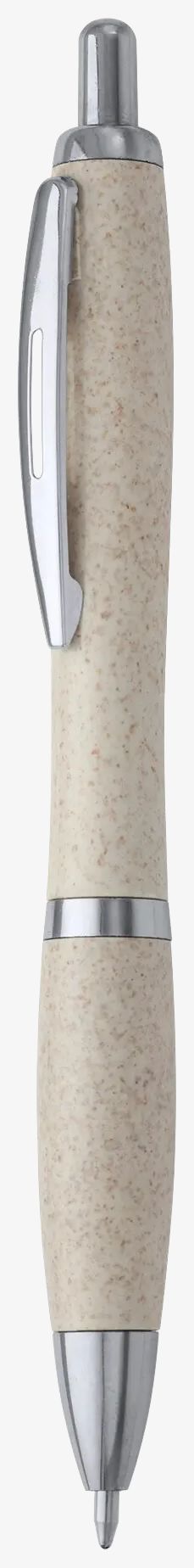 Długopis Gorbea wyposażony w przycisk i wykorzystujący niebieski tusz. Łączy materiały włókno pszeniczne i ABS w produkcji.