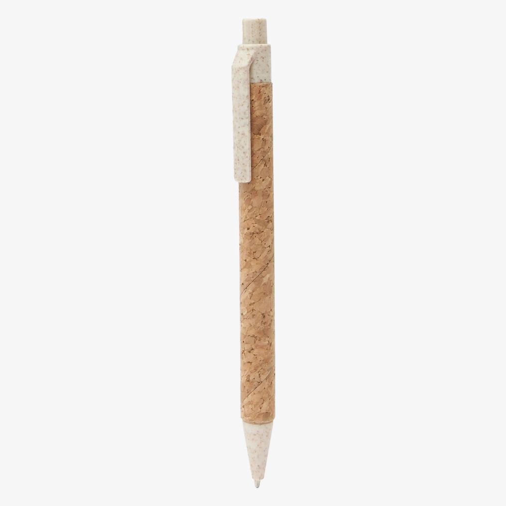 Długopis Comper posiada korpus z korka z końcówką, przyciskiem i klipsem z włókna pszenicy. Używa niebieskiego atramentu odpowiedniego do codziennego użytku.