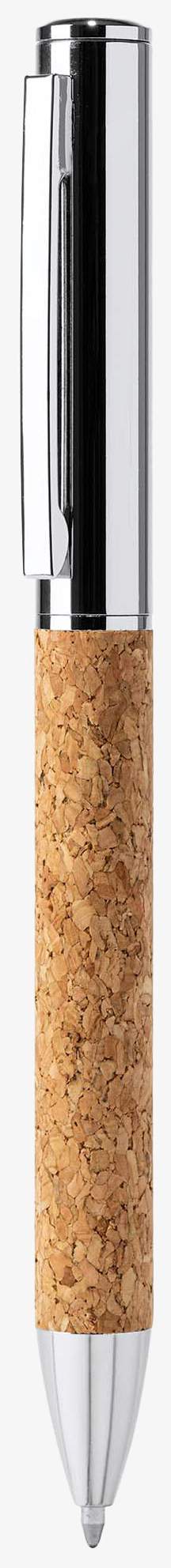 Metalowy długopis Artur ma korpus z korka z chromowanym wykończeniem. Jest wyposażony we wkład jumbo z niebieskim atramentem i dostarczany w etui z korka z czarną aksamitną podszewką.