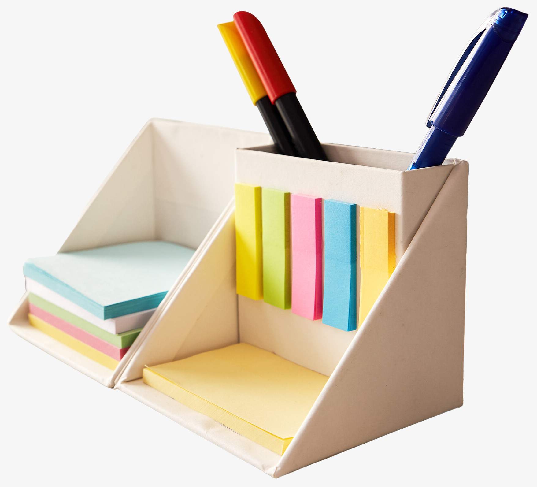 Zestaw biurowy w kształcie kostki zawiera ołówek, notes 250 kartek oraz 180 kolorowych karteczek samoprzylepnych. Zestaw obejmuje elementy niezbędne do użytku w biurze lub w domu.