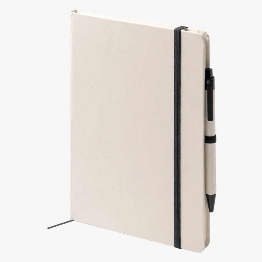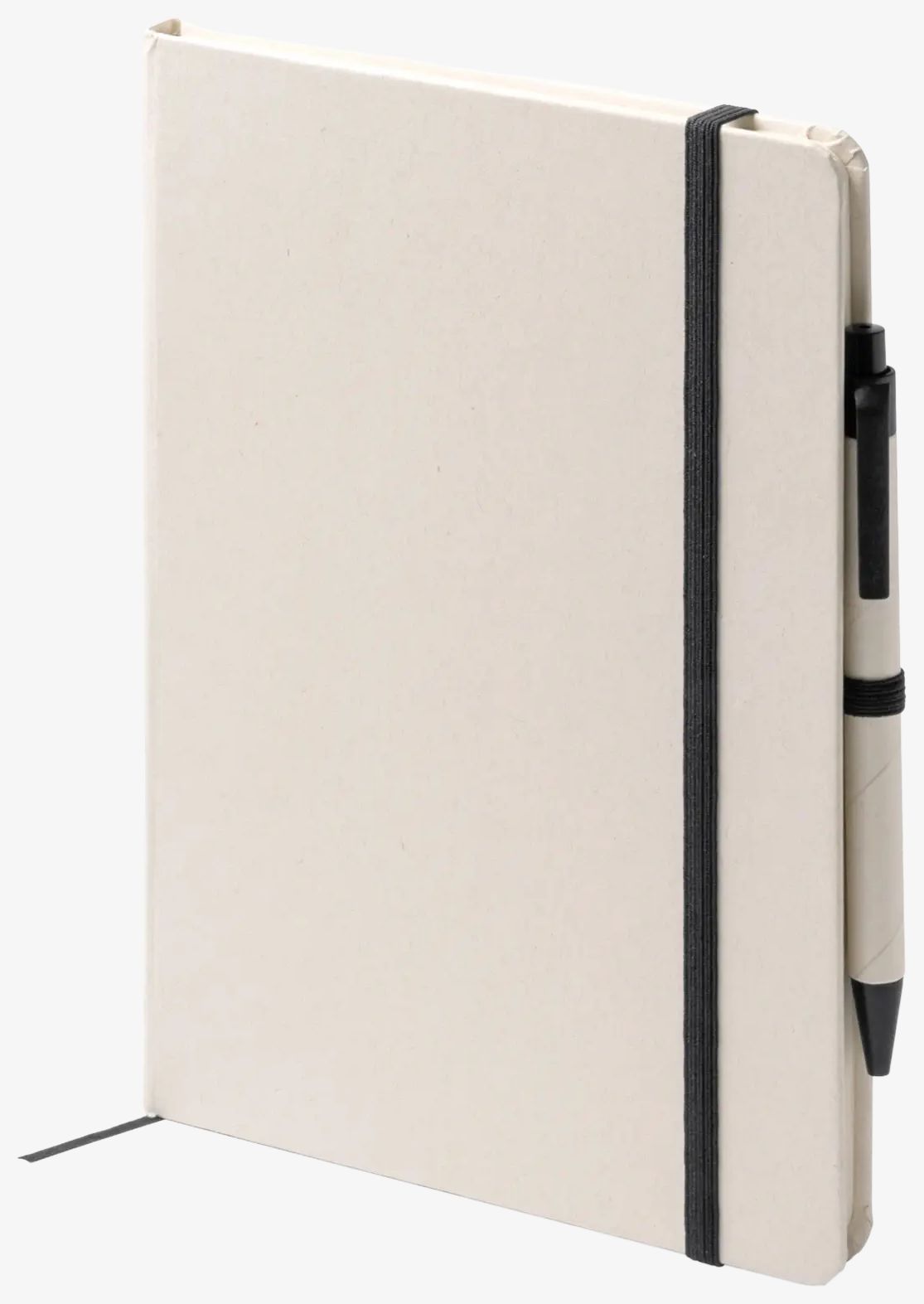Notes AUGER w formacie A5 posiada twardą okładkę i elastyczną opaskę, która utrzymuje kartki.