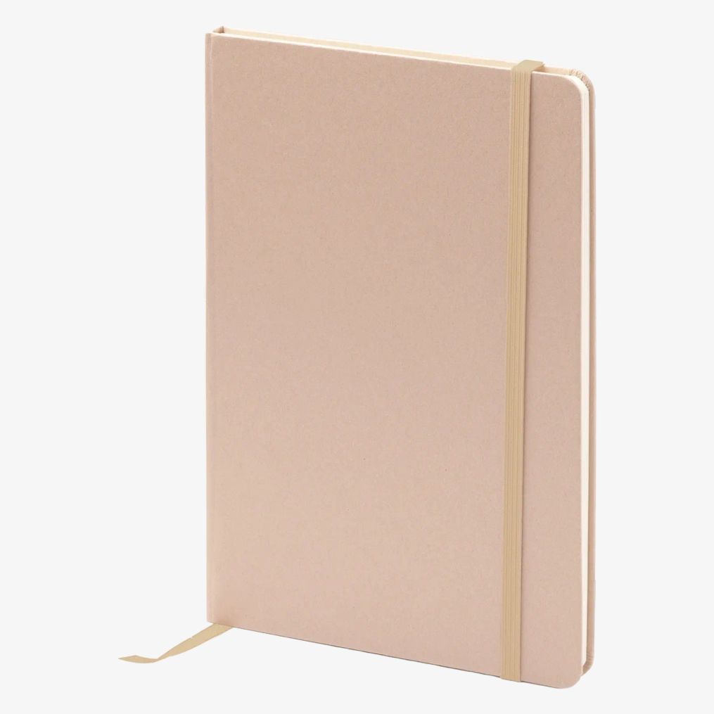 Notatnik FRUTI ma format A5 z twardą okładką wykonaną z odpadów owocowych. Zawiera zakładkę i dopasowaną gumkę. Wnętrze składa się z 80 liniowanych kartek. Dołączona jest etykieta identyfikacyjna kraft, łatwo usuwalna.