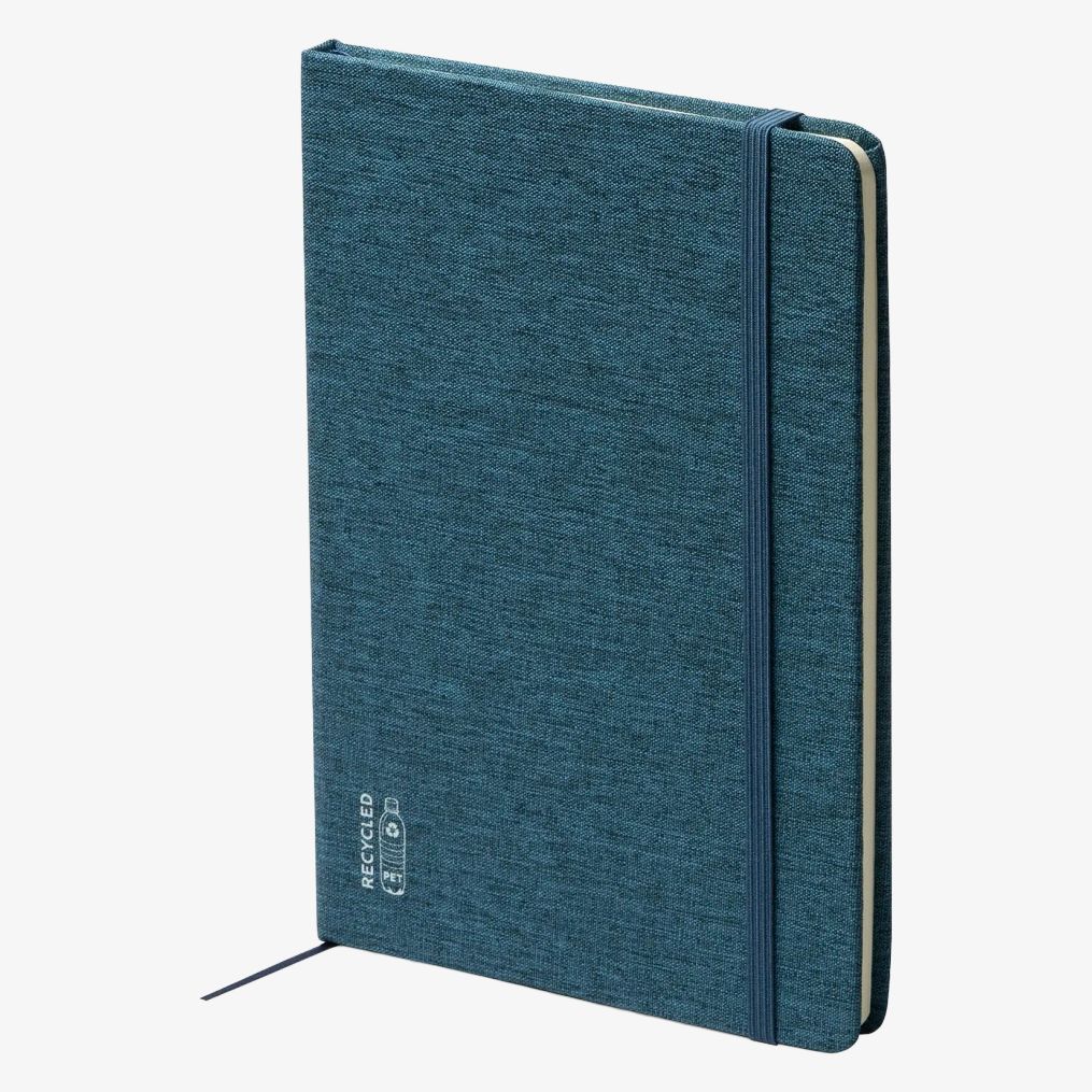 Notatnik SOYER ma twardą okładkę z RPET i zawiera 80 kartek do notatek. Zawiera zakładkę w formie elastycznej opaski.