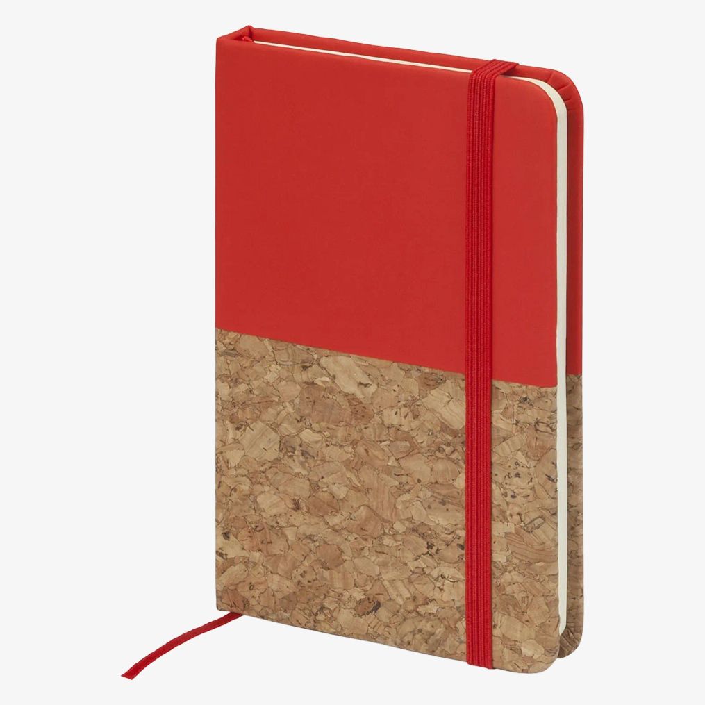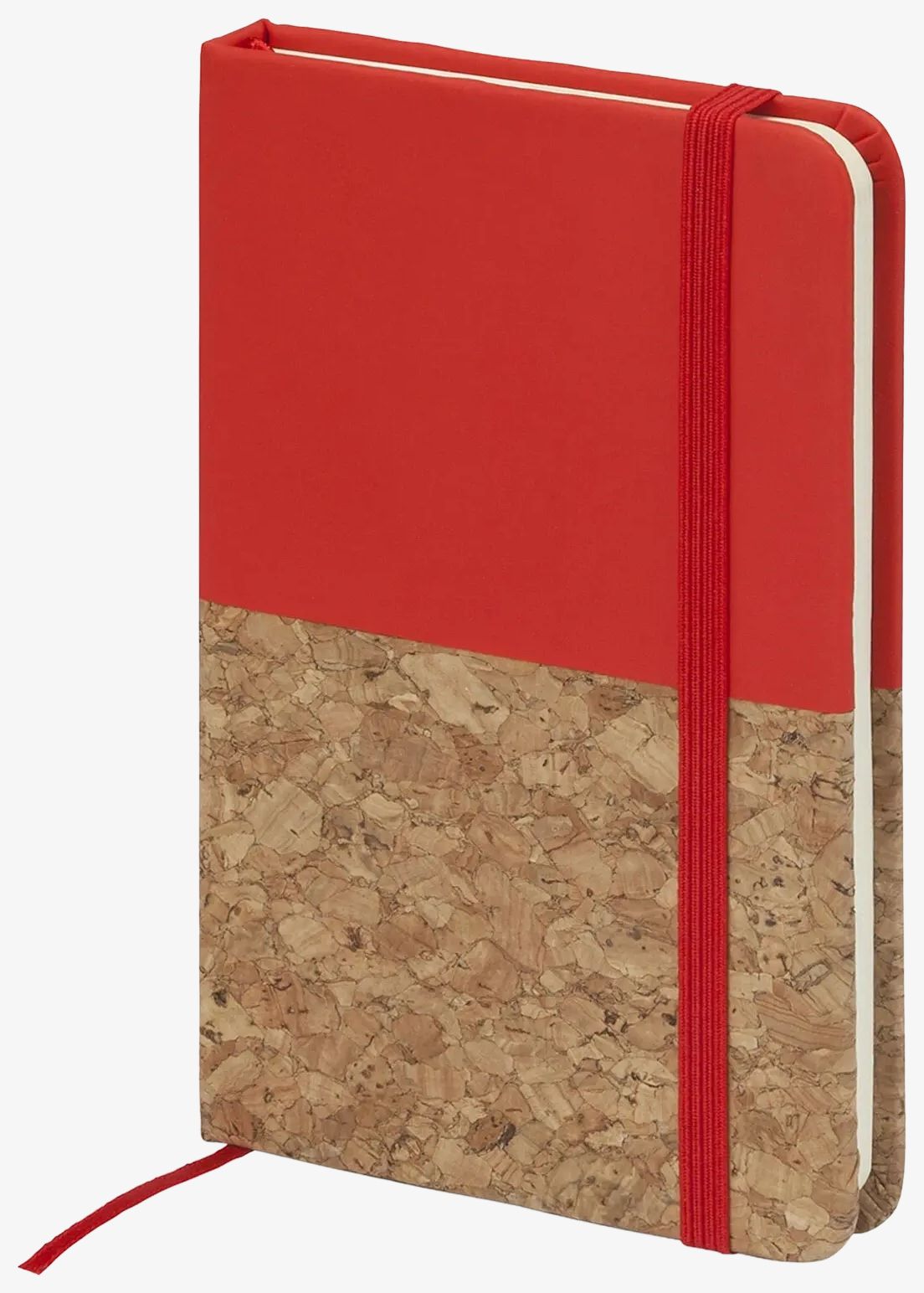 Notatnik Iris posiada twardą okładkę łączącą korek i skórę ekologiczną z elastyczną zakładką.