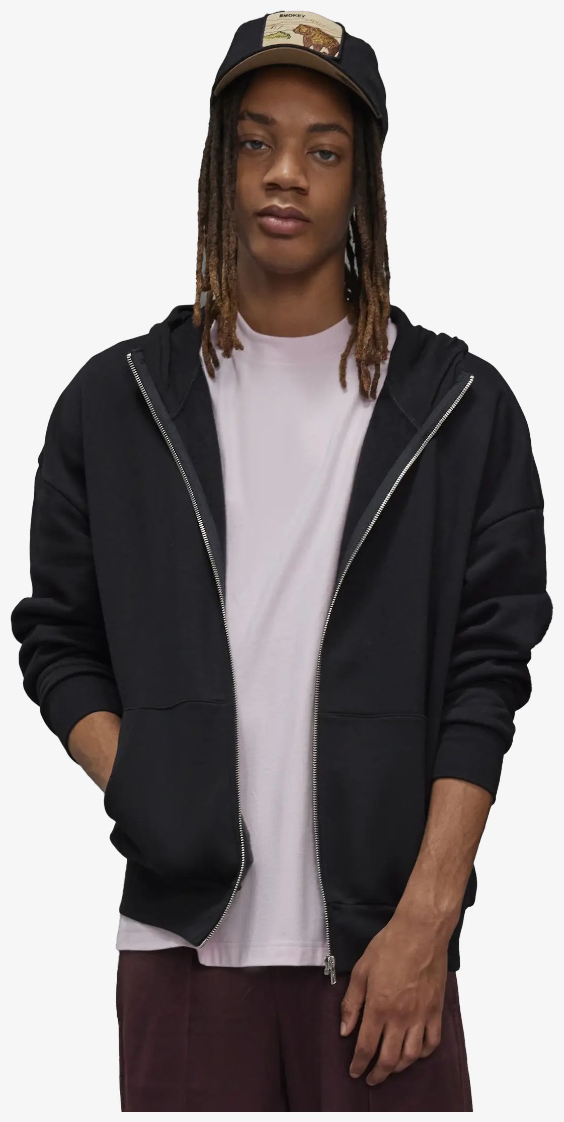 Bluza z kapturem Influence Zip Hood ma miękki polar od wewnątrz i boczne szwy. Materiał łączy uprany wstępnie bawełniany ring-spun oraz poliester z recyklingu. Fason jest luźny z opuszczonymi ramionami i stójką. Kaptur jest wyłożony dzianiną bez sznureczka do regulacji. Zamek błyskawiczny jest metalowy. Głębokie kieszenie i ściągacze u mankietów dopełniają ubranie.