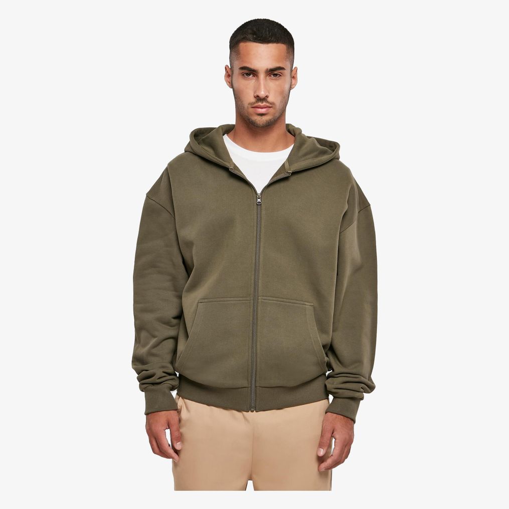 Bluza z kapturem rozpinana Ultra Heavy Zip Hoody zaprojektowana na chłodne dni z metalowym zamkiem na całej długości. Zawiera podzieloną kieszeń kangurka i ściągacze na mankietach oraz w pasie. Tkanina frotté jest gruba i wykonana w 100% z bawełny.