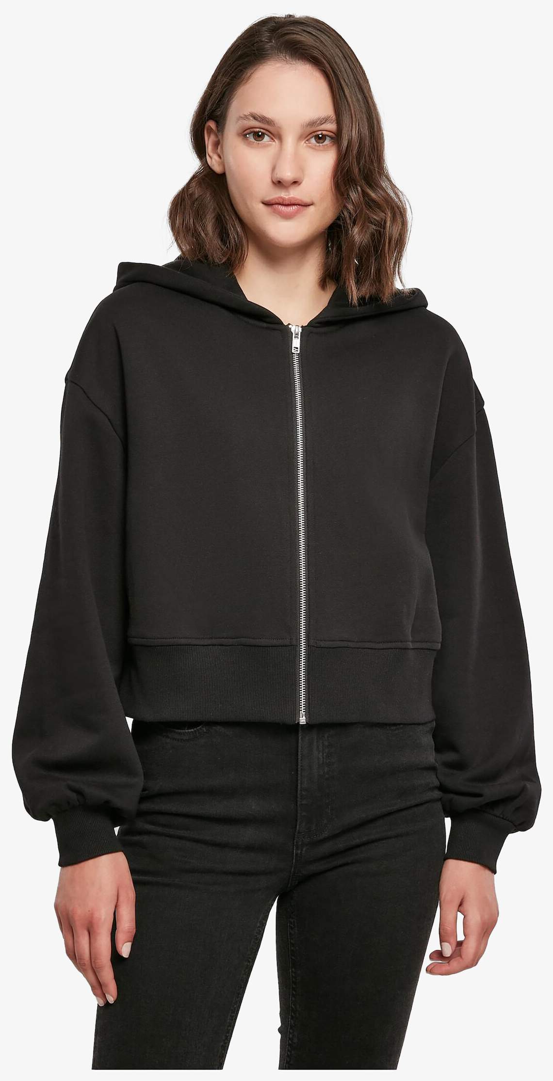 BY237 - Ladies Short Oversized Zip Jacket - black