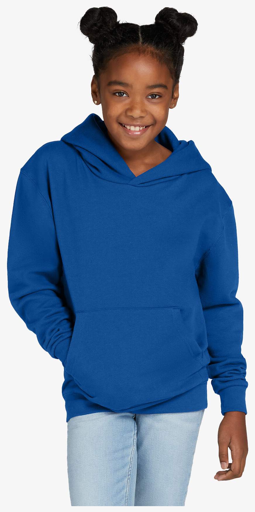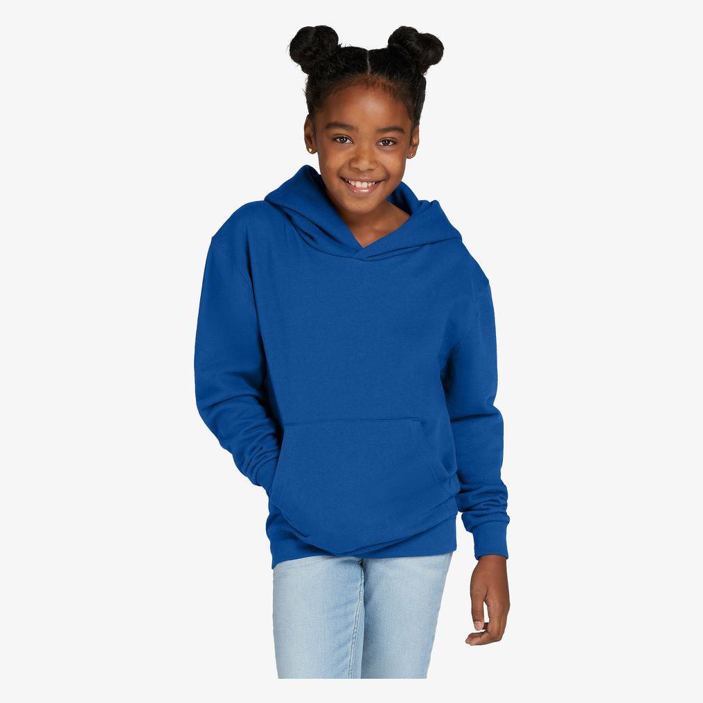 Bluza dziecięca z kapturkiem Hooded Sweatshirt Kids łączy bawełnę czesaną ring-spun i poliester, ma wnętrze szczotkowane i kieszeń kangurkę. Ściągacze przy mankietach i dole zapewniają odpowiednie dopasowanie. Bluza ma szwy boczne i klasyczny krój.