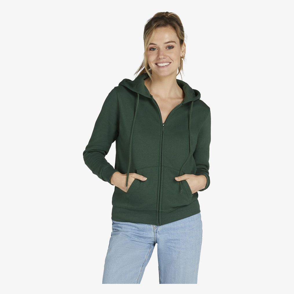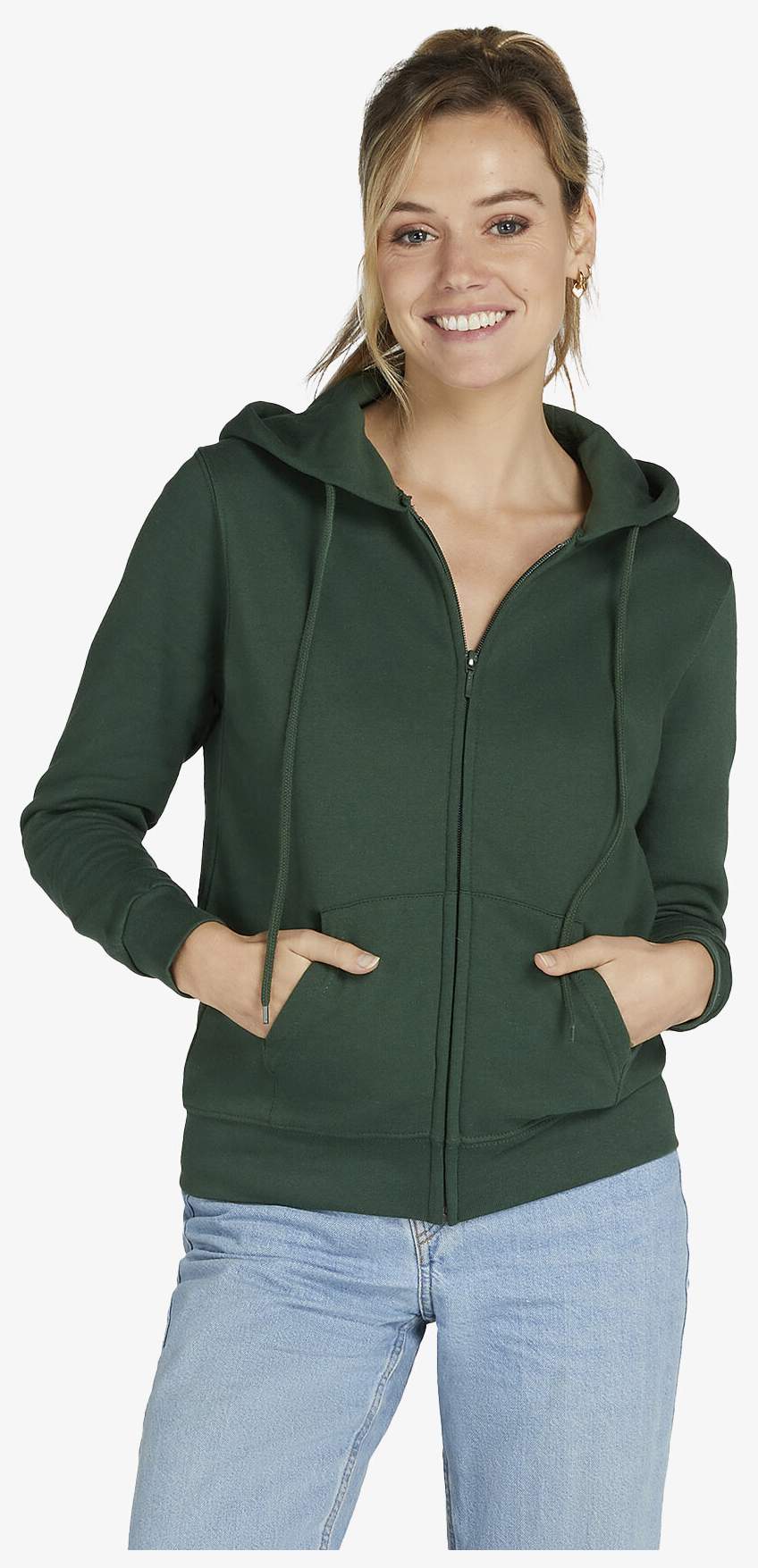 Damska rozpinana bluza z kapturem łączy komfort i funkcjonalność z wbudowanymi kieszeniami typu kangur i dopasowanym zapięciem na zamek. Rękawy wszywane oraz ściągacze na dole i na mankietach wzmacniają dopasowanie, podczas gdy wnętrze z dzianiny szczotkowanej zapewnia miękkość.