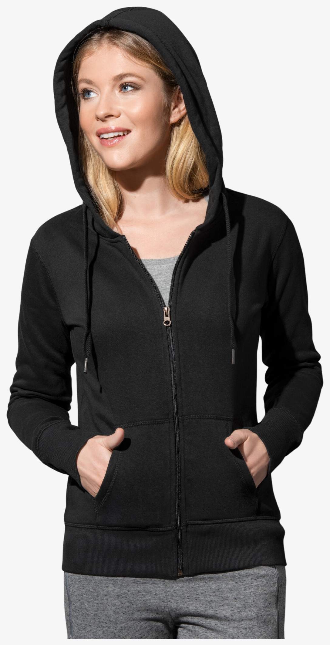 Sweat Jacket Select to damska rozpinana bluza z kapturem, z kieszenią kangurką, podszytym kapturem i drapaną stroną wewnętrzną dla cieplejszego odczucia. Elementy metalowe są bez niklu, a prążkowane wykończenia z elastanem dopełniają całość.