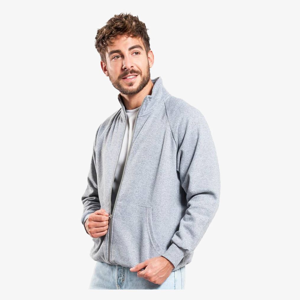 sweat zippé zawiera kieszeń kangurzą, dopasowanie typu tubular i rękawy raglanowe. Wyposażony w taśmę czyszczącą ton w ton oraz ściągacze na mankietach.