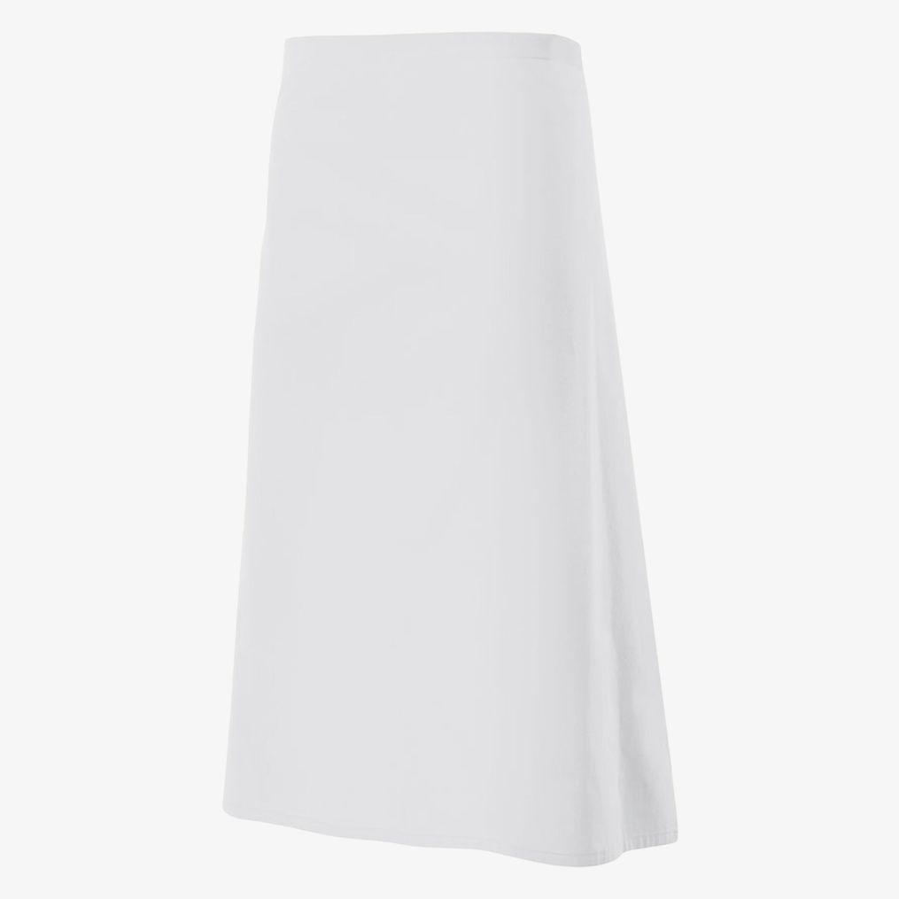Długi tablier z poliestru i bawełny łączy trwałość i komfort do codziennego użytku. Wyposażony w dwa paski na końcach do wiązania. Ten model nie ma kieszeni.