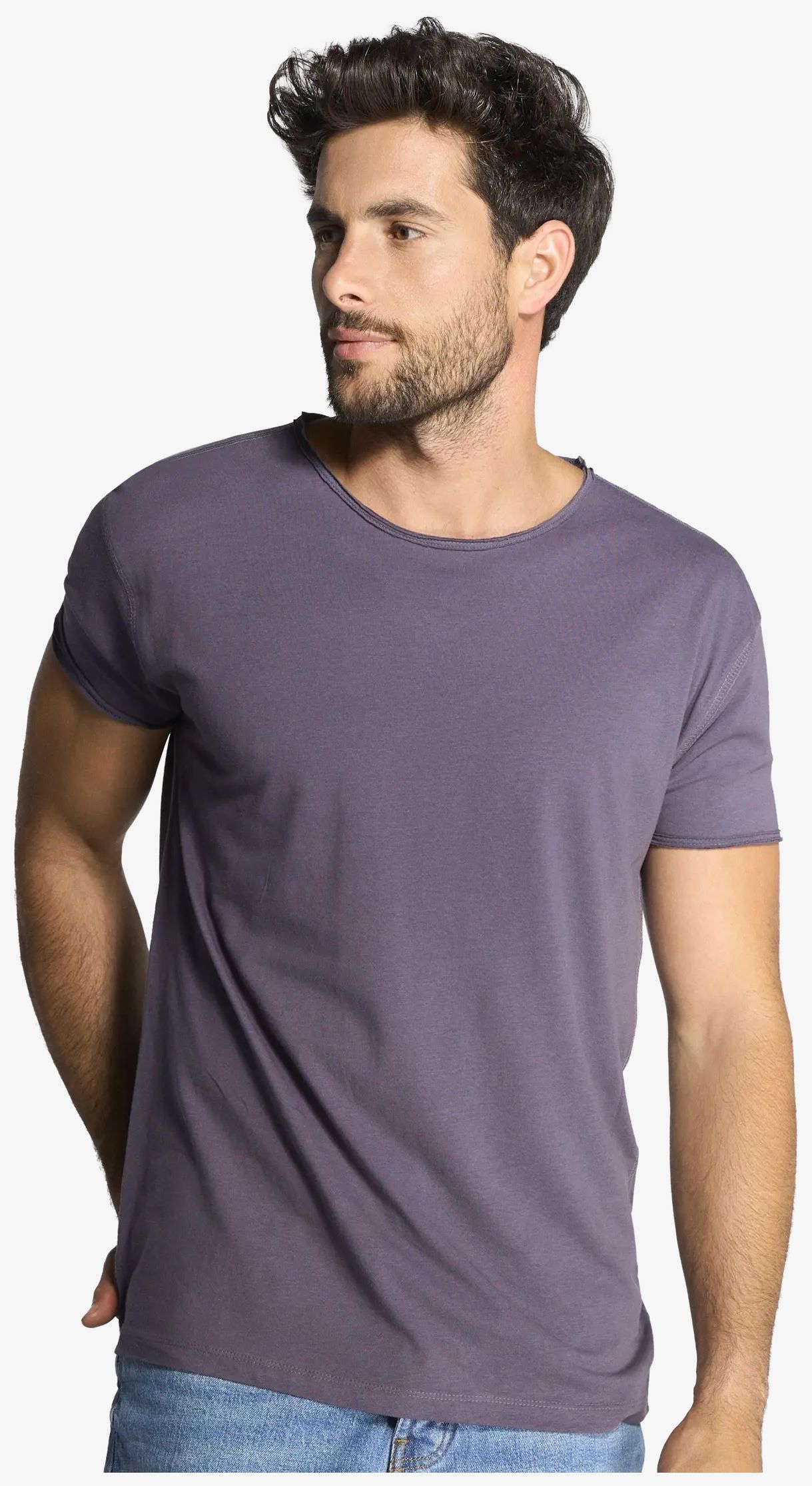Tee-shirt bawełniany Urban sea man wykonany jest z surowym kołnierzem i rękawami bez wykończenia. Pranie enzymatyczne zapewnia miękkość. Metka jest odpinana.