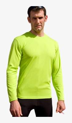 Performance T-Shirt LS to tee-shirt z długimi rękawami z poliestru, z oddychającym materiałem ograniczającym wilgoć na skórze. Zaokrąglony tylny dół i nadrukowane elementy odblaskowe.