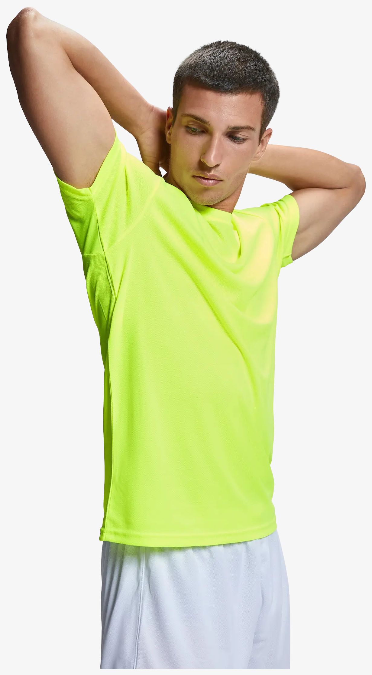 Krótki rękaw tee-shirt Camimera z okrągłym dekoltem zaprojektowany w celu zapewnienia dobrej oddychalności dzięki tkaninie z pikowanego poliestru. Dostępny w różnych rozmiarach, w tym dziecięcych. Metka jest odpinana.