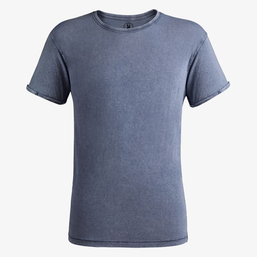 Krótki rękaw tee-shirt Husky z czesaną bawełną ma okrągły dekolt z dzianiny prążkowanej 1x1 z taśmą wzmacniającą na karku od barku do barku. Posiada podwójne szwy przy pachach oraz otwory na rękawach z obszyciem. W tylnej części znajduje się samoprzylepna etykieta.