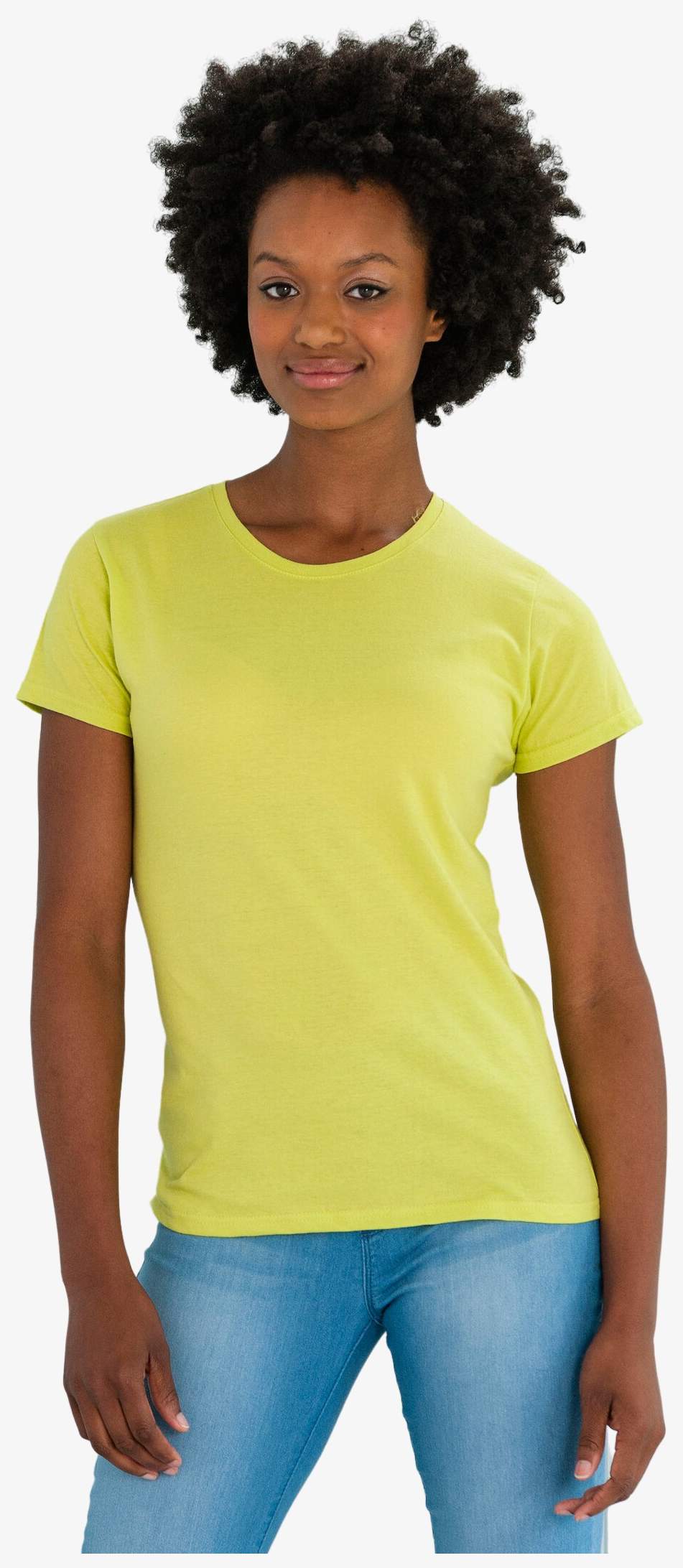 Ladies' Slim T to dopasowany tee-shirt o dłuższym kroju, z szwami bocznymi i taśmą wzmacniającą dla stabilnego układania się na co dzień.