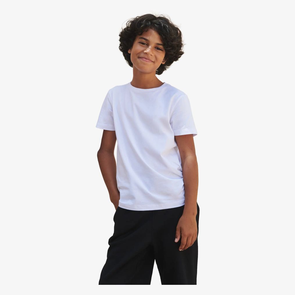 Dziecięcy rozciągliwy tee-shirt Kids' feel good stretch T ma okrągły dekolt, długi krój oraz odczepianą metkę. Materiał został poddany obróbce dla miękkiego dotyku.