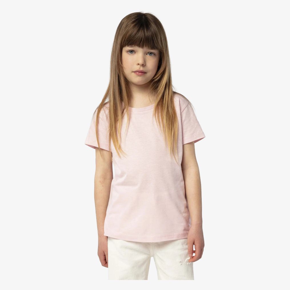 Cherry to dziecięcy tee-shirt dla dziewczynki z półczesanej bawełny, o dopasowanym kroju i wąskim dekolcie. Taśma przy dekolcie i elastyczny ściągacz zapewniają dopasowanie.
