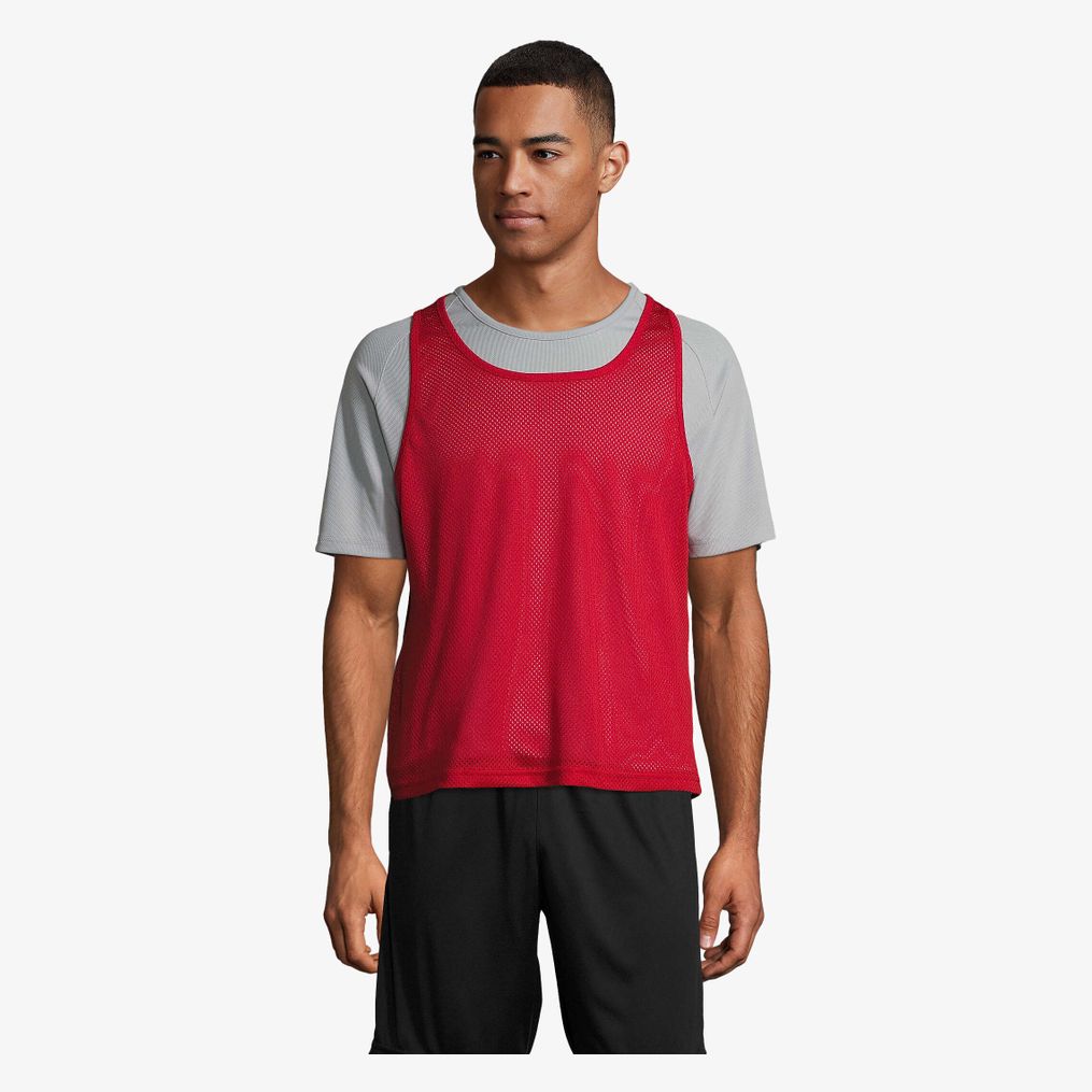 Naramiennik Anfield 90210 nadaje się do treningów i gier zespołowych, z oddychającą, ażurową siatką i okrągłym dekoltem. Wykończenia lamówką i ton w ton lamówka wzmacniają dekolt oraz otwory na ramiona.