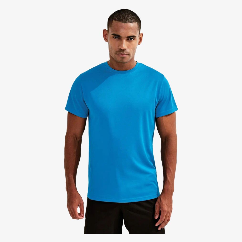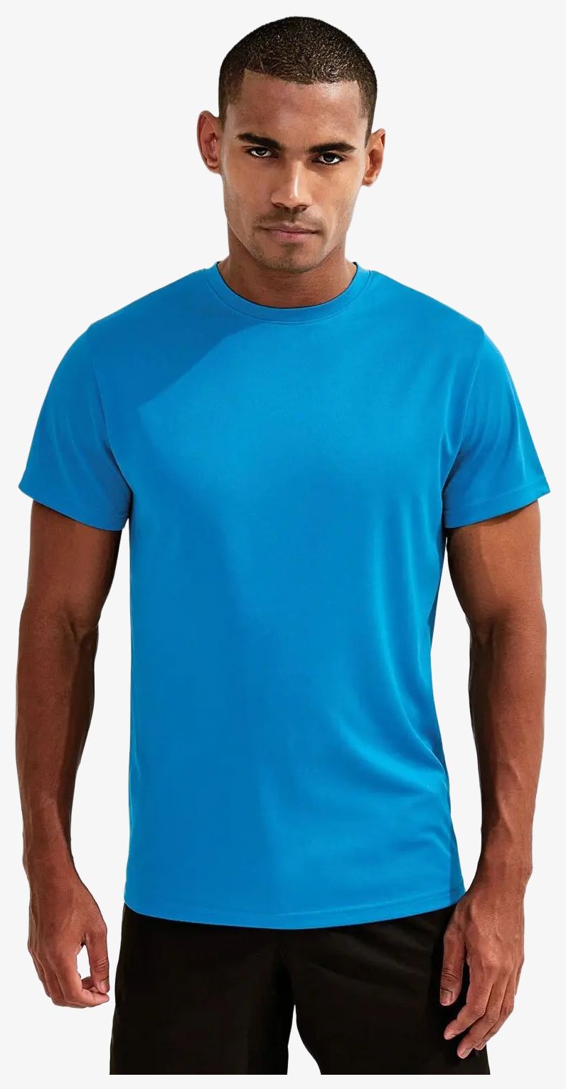 Teksturowany męski tee-shirt z tkaniny z recyklingu ma klasyczny sportowy krój. Wykonany jest z lekkiego i przewiewnego poliestru z recyklingu, który szybko schnie, zapewniając maksymalną swobodę ruchów bez ograniczeń. Barwienie barwnikami kationowymi poprawia odporność tkaniny na blaknięcie, odbarwienia i plamy.