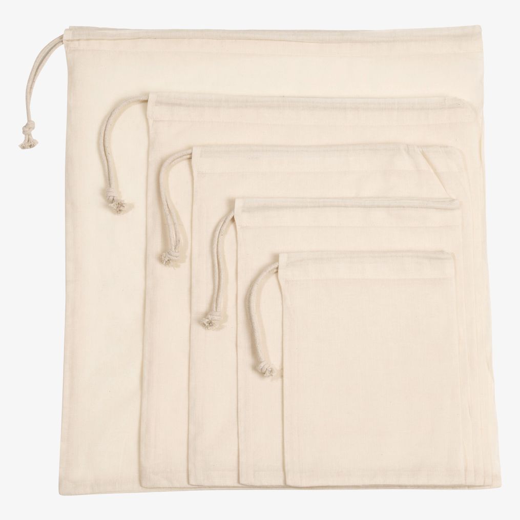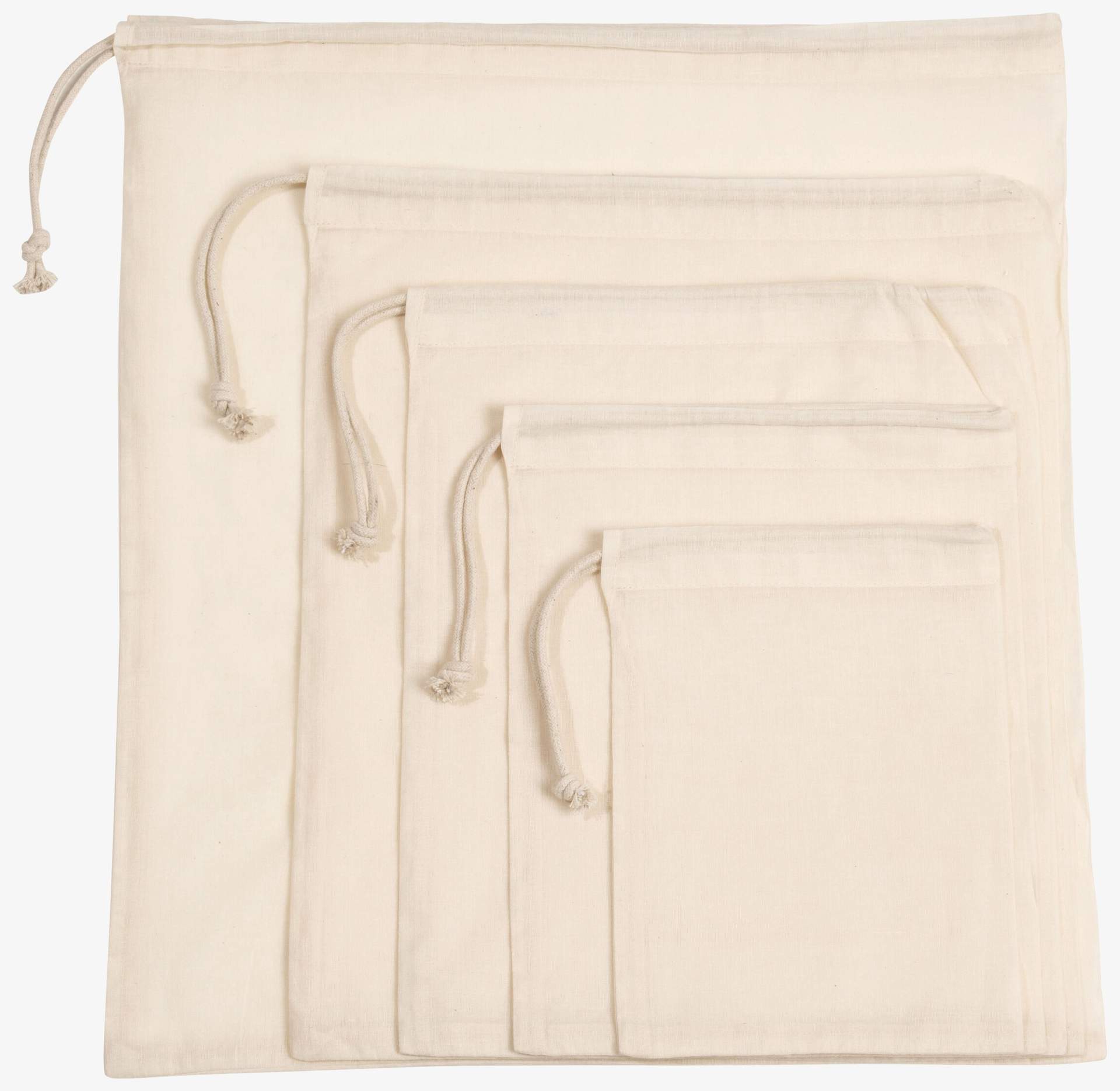 Worek ze ściągaczem z certyfikowanej bawełny organicznej OCS 100 kontrolowanej przez Ecocert Greenlife, wyposażony w zapięcie na sznurek. Dostępne różne formaty do różnych zastosowań.
